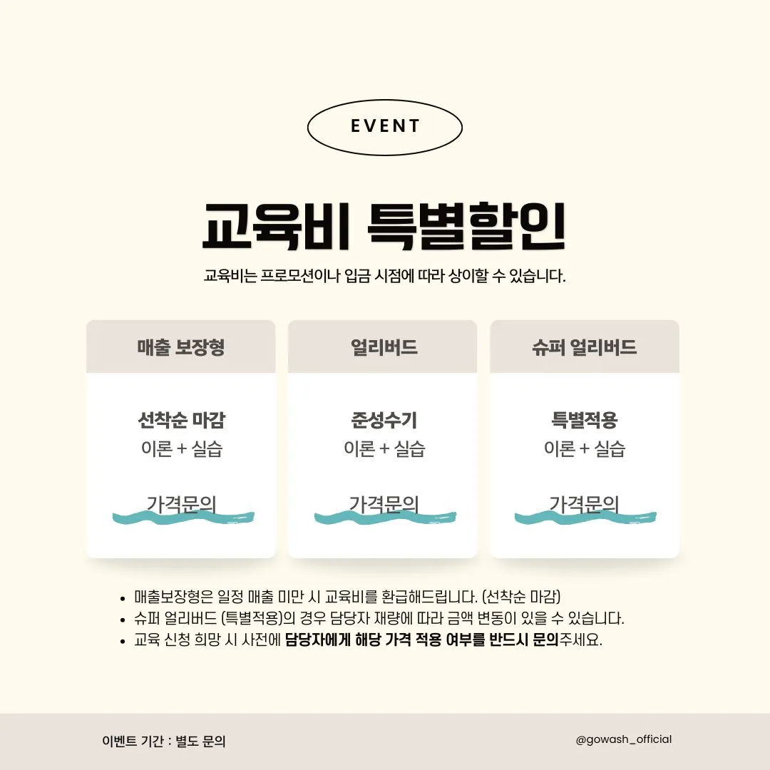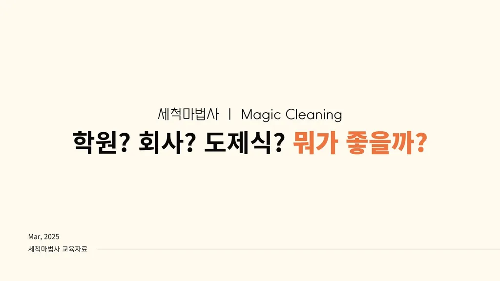 저희 슬로건, "깨끗함의 기준을 새롭게, 보이지 않는 곳까지 확실하게"는 단순히 청소를 넘어서, 고객의 삶을 더 깨끗하고 건강하게 만들어주자는 철학을 담고 있습니다. 저희 철학에 공감하고 함께할 분들을 찾고 있습니다. 교육이 끝난 후에는 단순히 "기술"만 배운 게 아니라, 저희와 함께 장기적인 비전을 공유하고 성장할 수 있는 기회를 드리려고 합니다. 문을 두들겨 보세요, 저희가 화답해드리겠습니다